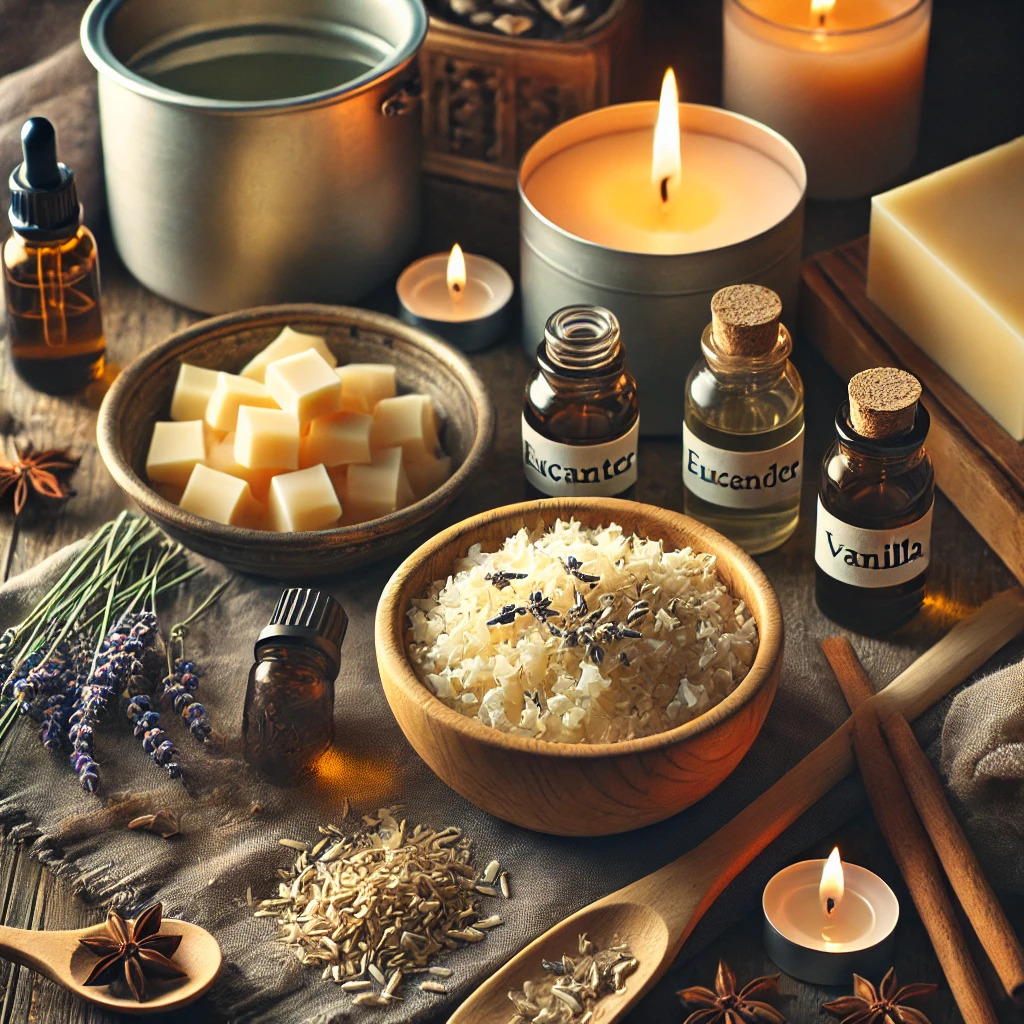 - 왁스: 소이왁스(친환경적이고 연소 시간이 길음) 또는 파라핀왁스(저렴하고 쉽게 구함)